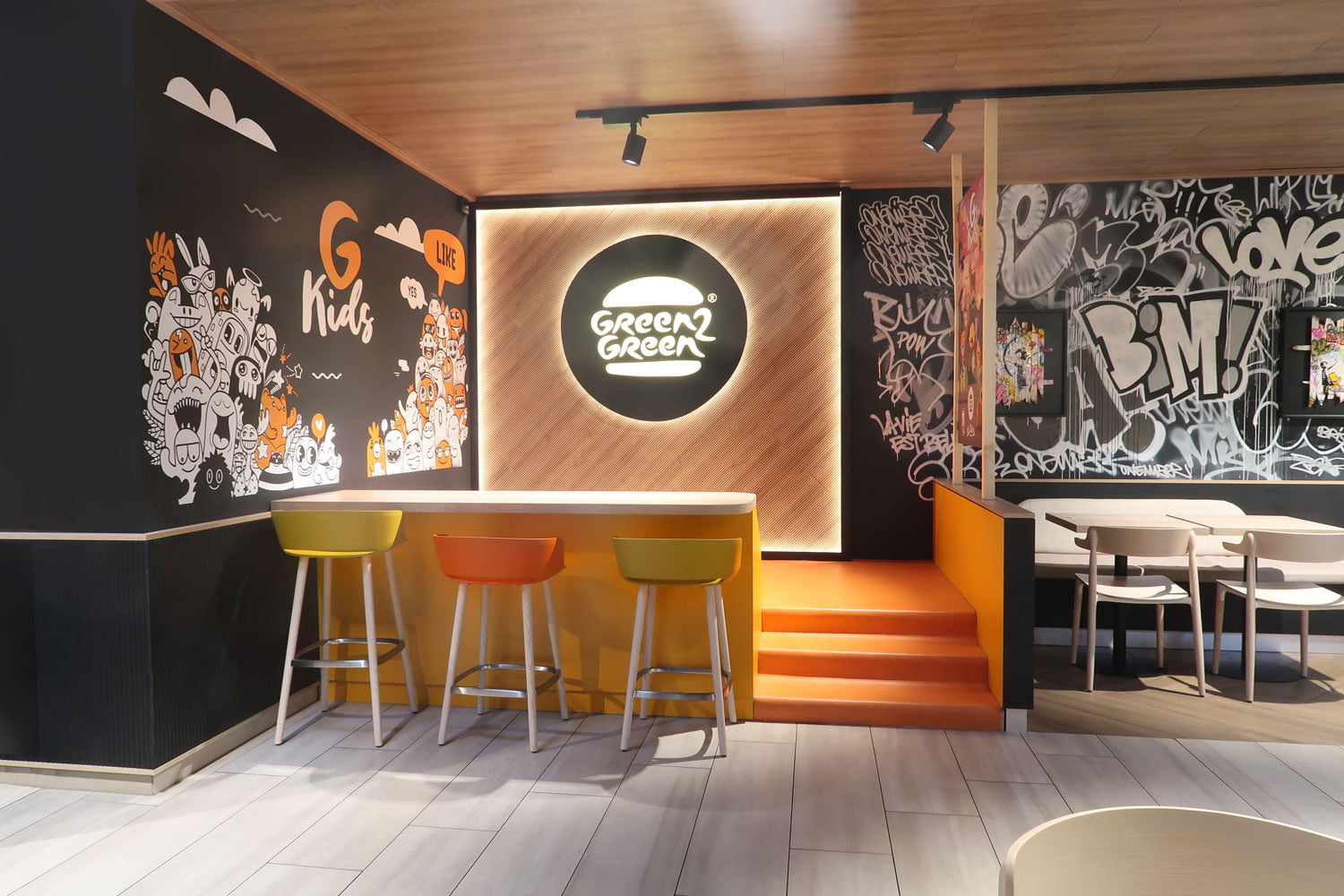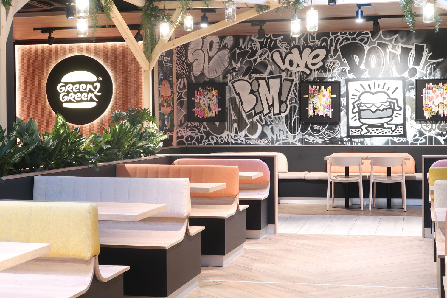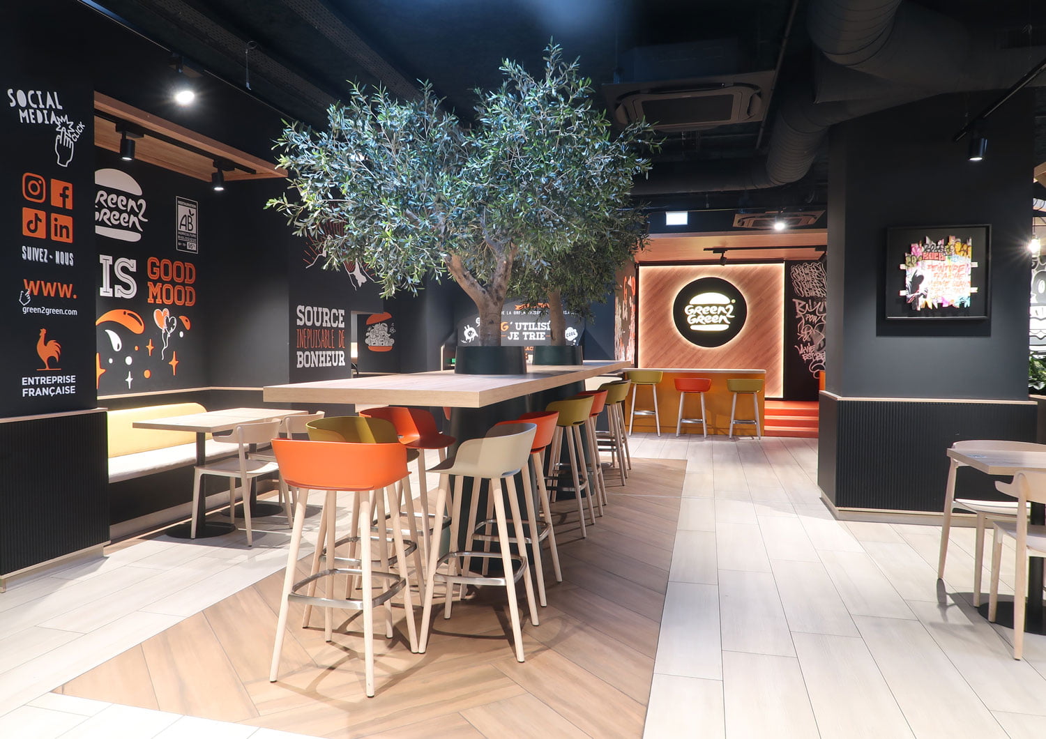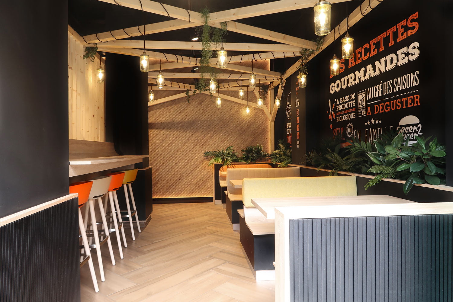 Aménagement du 2ème restaurant de burger bio G2G. Format centre ville.